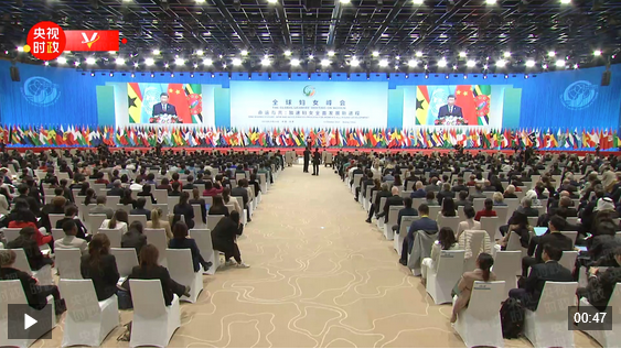 10月13日上午,国家主席习近平在北京国家会议中心出席全球妇女峰会开幕式并发表主旨讲话。
