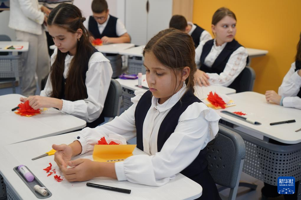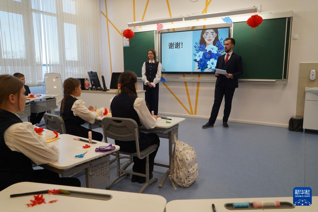 12月4日,在俄罗斯阿穆尔州斯沃博德内市,斯沃博德内俄气学校的学生在上中国文化课。新华社记者刘恺摄