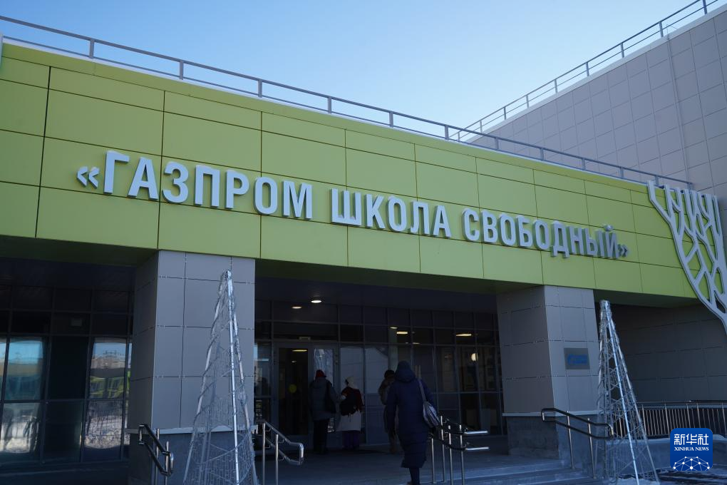 这是12月4日在俄罗斯阿穆尔州斯沃博德内市拍摄的斯沃博德内俄气学校入口。新华社记者刘恺摄