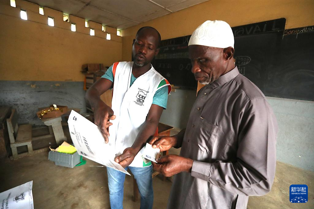 12月27日,在科特迪瓦经济首都阿比让的一处投票站,一名工作人员为选民讲解投票规则。科特迪瓦国民议会选举投票27日上午在全国展开,将选举产生新一届国民议会共255名议员。初步计票结果将于12月28日至30日公布。科特迪瓦国民议会最终组成名单将于2026年1月16日前公布。新华社发(伊万·宋摄)