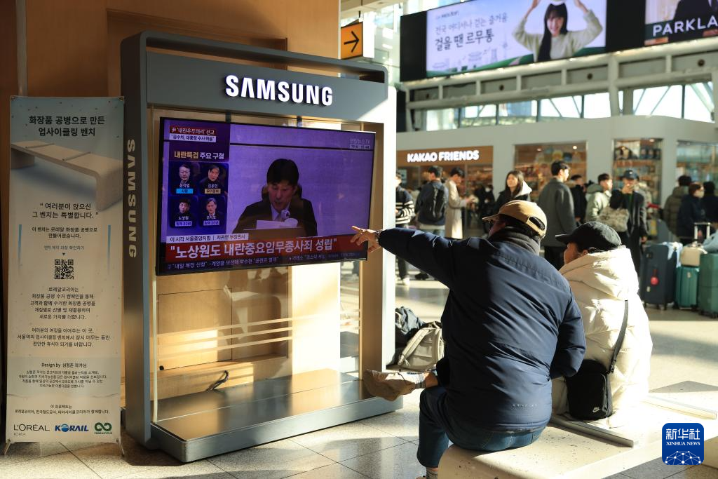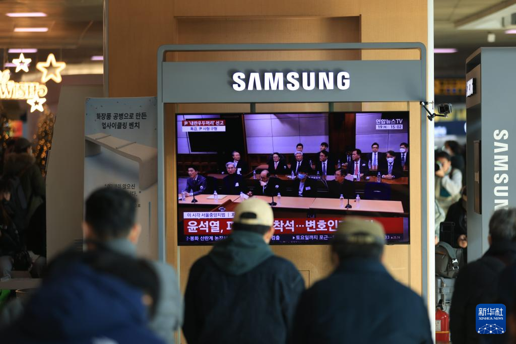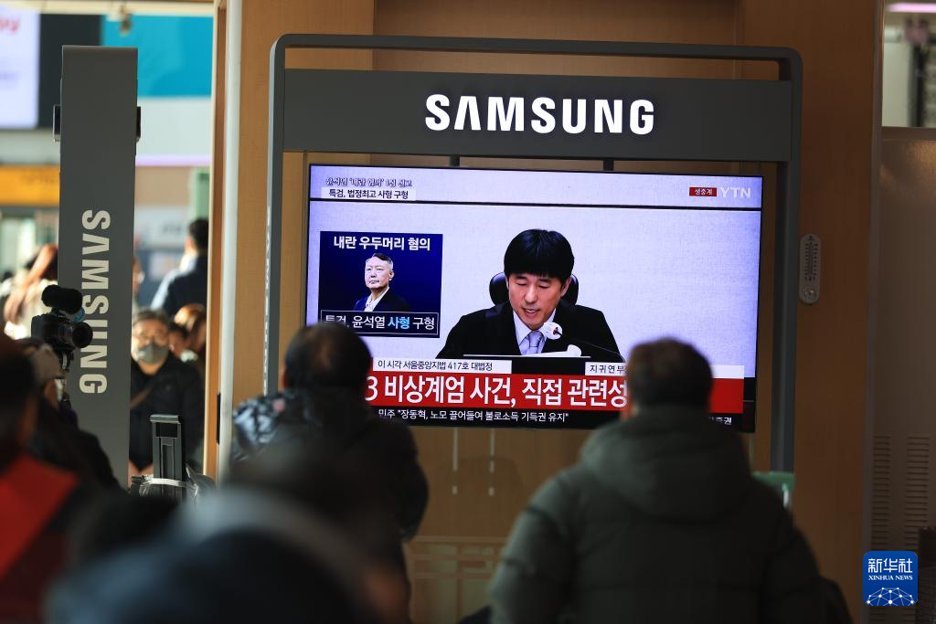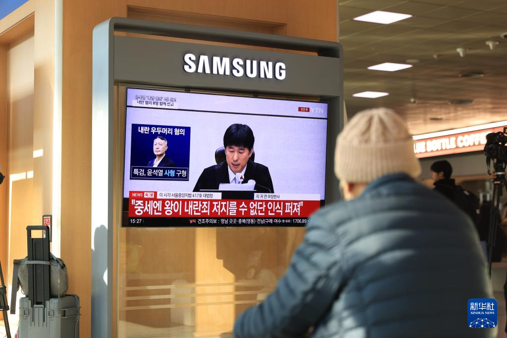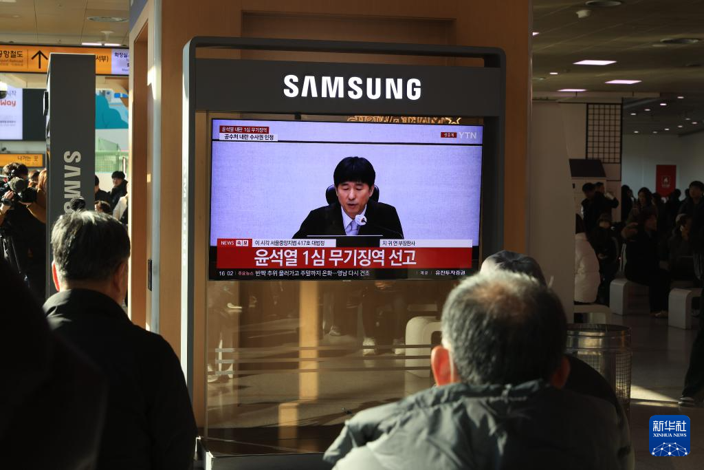 2月19日,韩国民众在首尔火车站观看尹锡悦内乱头目罪宣判的新闻。韩国首尔中央地方法院2月19日宣布,韩国前总统尹锡悦内乱头目罪罪名成立,一审被判无期徒刑。同案被告、前国防部长官金龙显被判处有期徒刑30年。新华社发(朴晋泽摄)