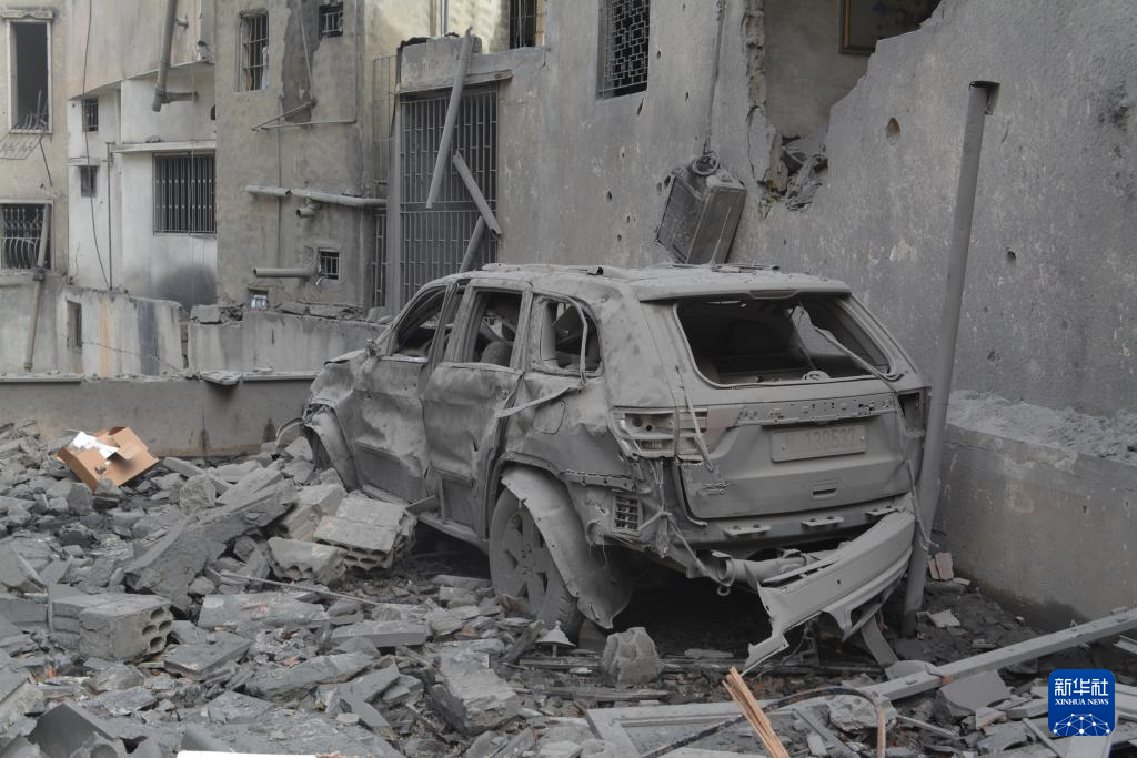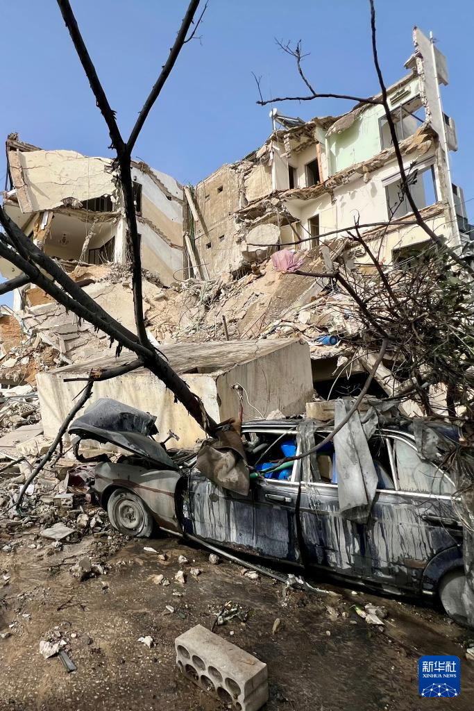 这是4月4日在黎巴嫩提尔拍摄的遭以色列空袭损毁的车辆和建筑。黎巴嫩国家通讯社4日报道,以色列当天对贝鲁特南郊以及黎南部多地发动多次空袭,造成至少14人死亡、25人受伤。新华社发(阿里·哈希绍摄)