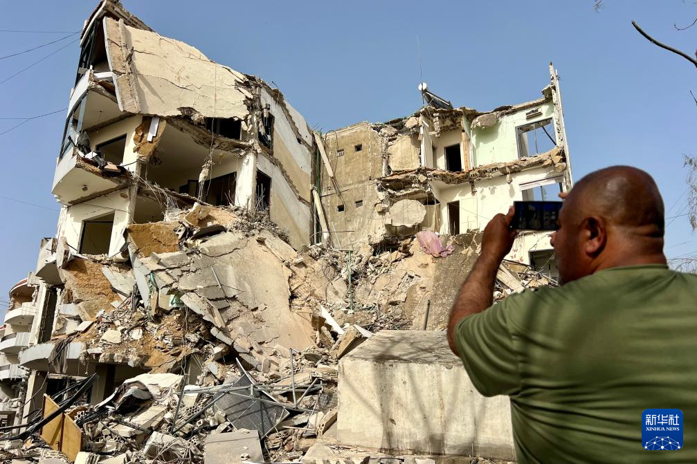 4月4日,在黎巴嫩提尔,一名男子用手机拍摄遭以色列空袭损毁的建筑。黎巴嫩国家通讯社4日报道,以色列当天对贝鲁特南郊以及黎南部多地发动多次空袭,造成至少14人死亡、25人受伤。新华社发(阿里·哈希绍摄)
